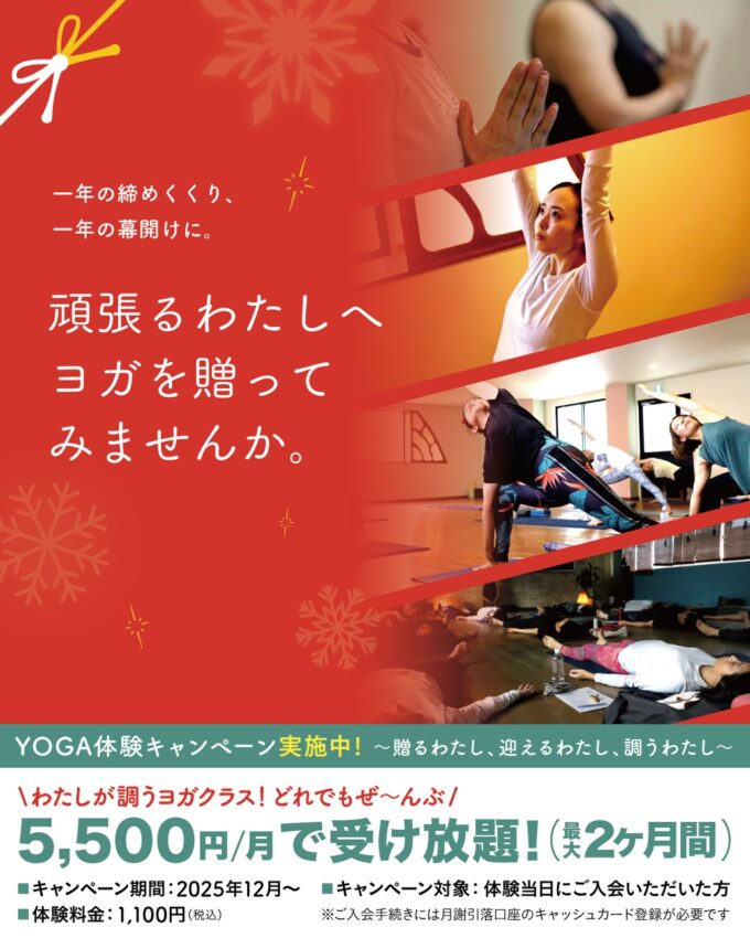 一年の締めくくり、一年の幕開けに、頑張るわたしへヨガを贈ってみませんか。